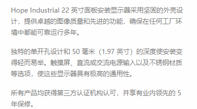 Hope Industrial 22英寸工业面板安装显示器