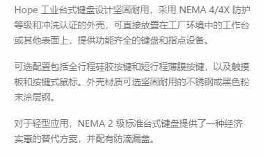 Hope Industrial 工业台式键盘系列